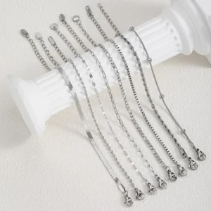 Women Chain Bracelet Silver Color, Stainless Steel Link Stackable Bracelets, Layered Fashion Accessories Gifts