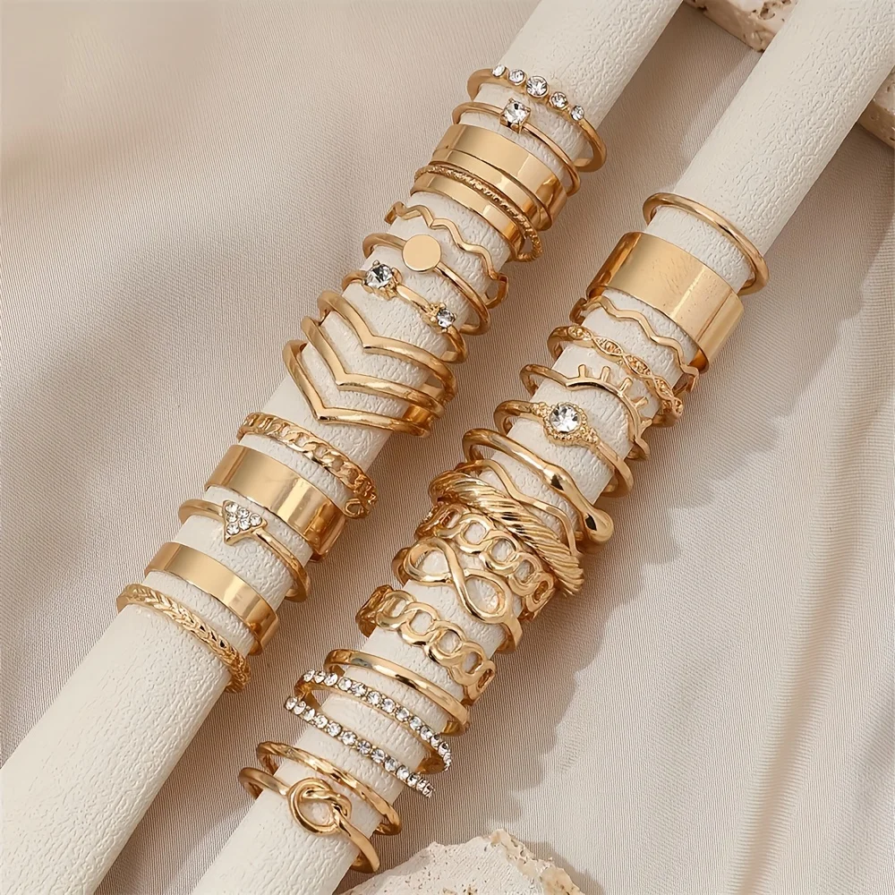 30pcs/set Elegant Stackable Rings Set With Shiny Rhinestone Inlaid, Fashion Infinity Knot Design, Vacation Style Perfect Stylish