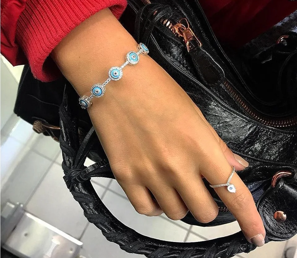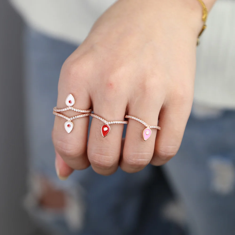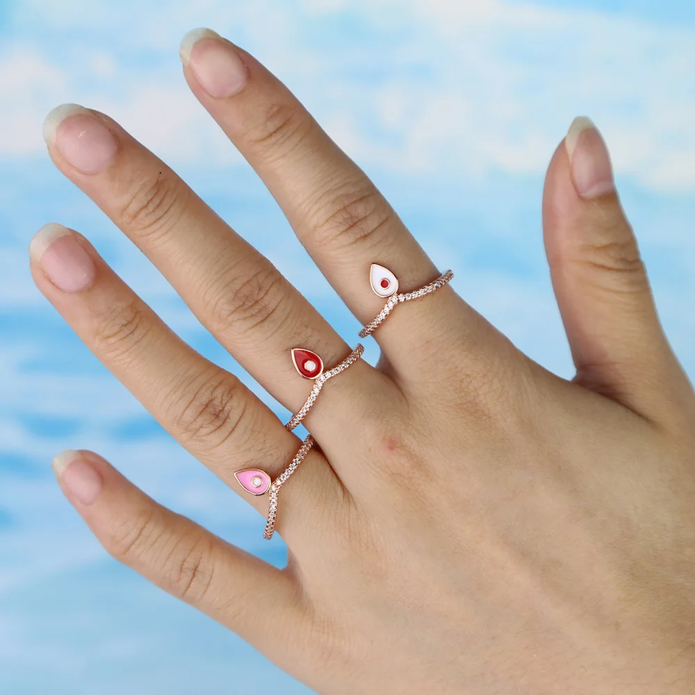 cute lovely enamel evil eye ring rose gold color pink white red eyes lucky turkish evil eye finger engagement rings