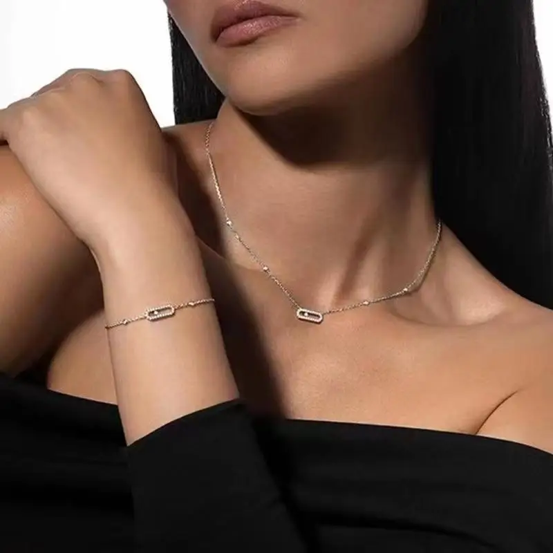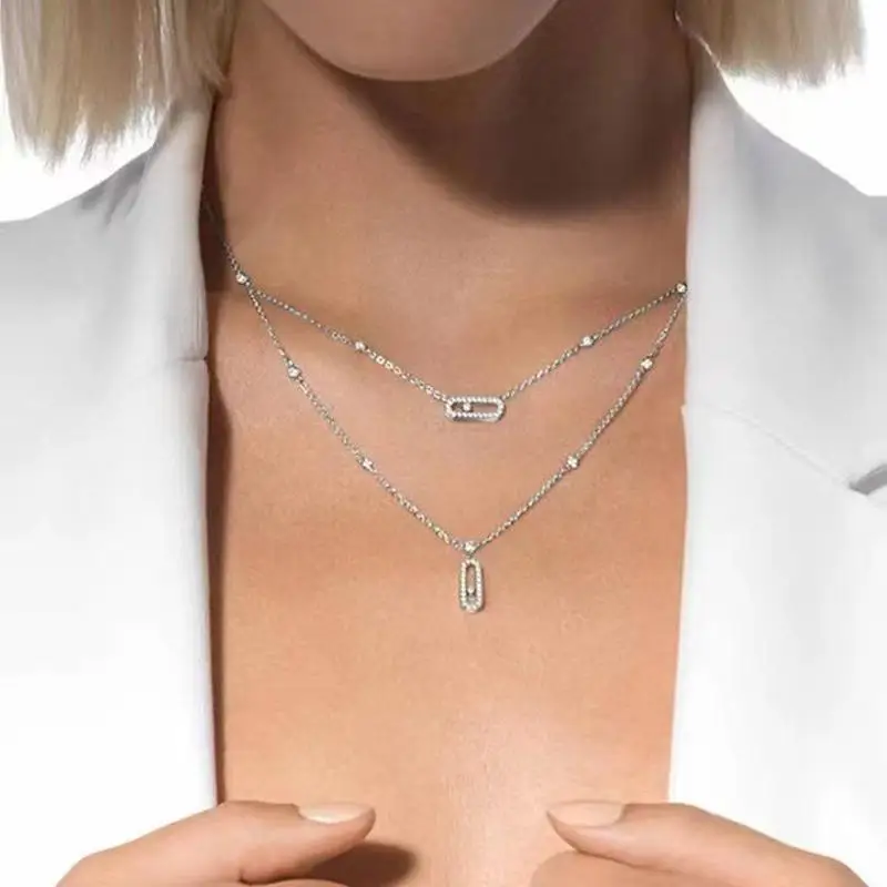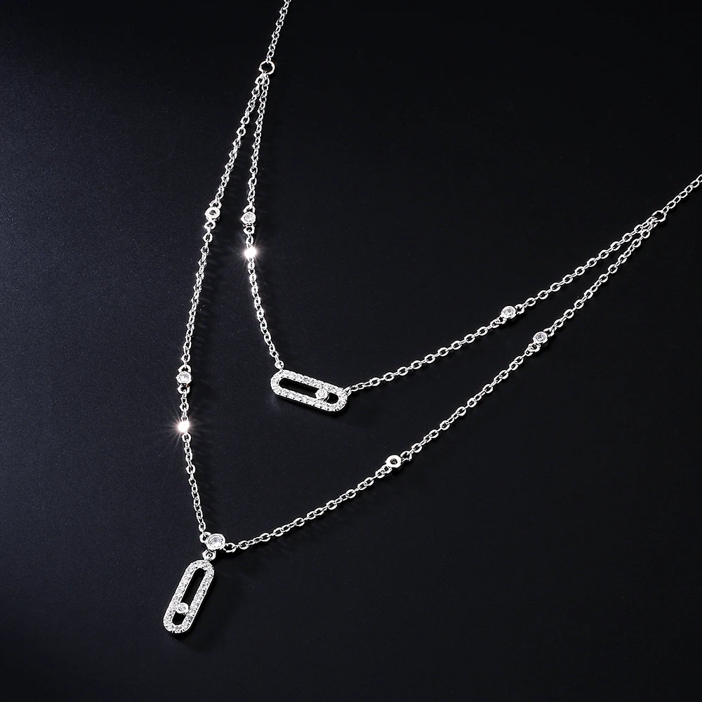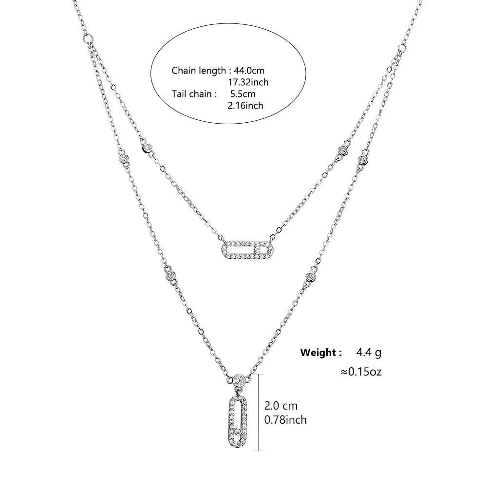 Fashion Double Layer Paper Clip Cubic Zirconia Copper Necklace Earring For Women Couple Holiday Gift Set Party Everyday Jewelry