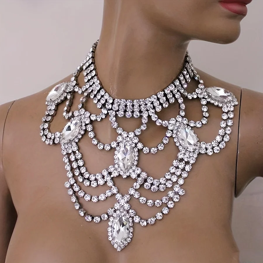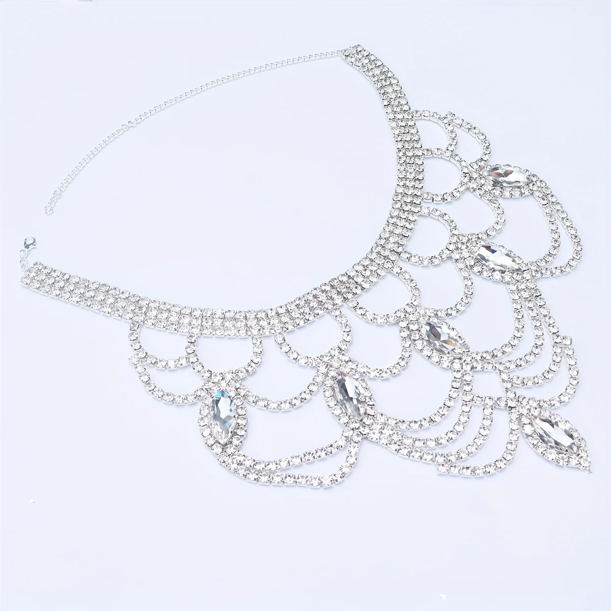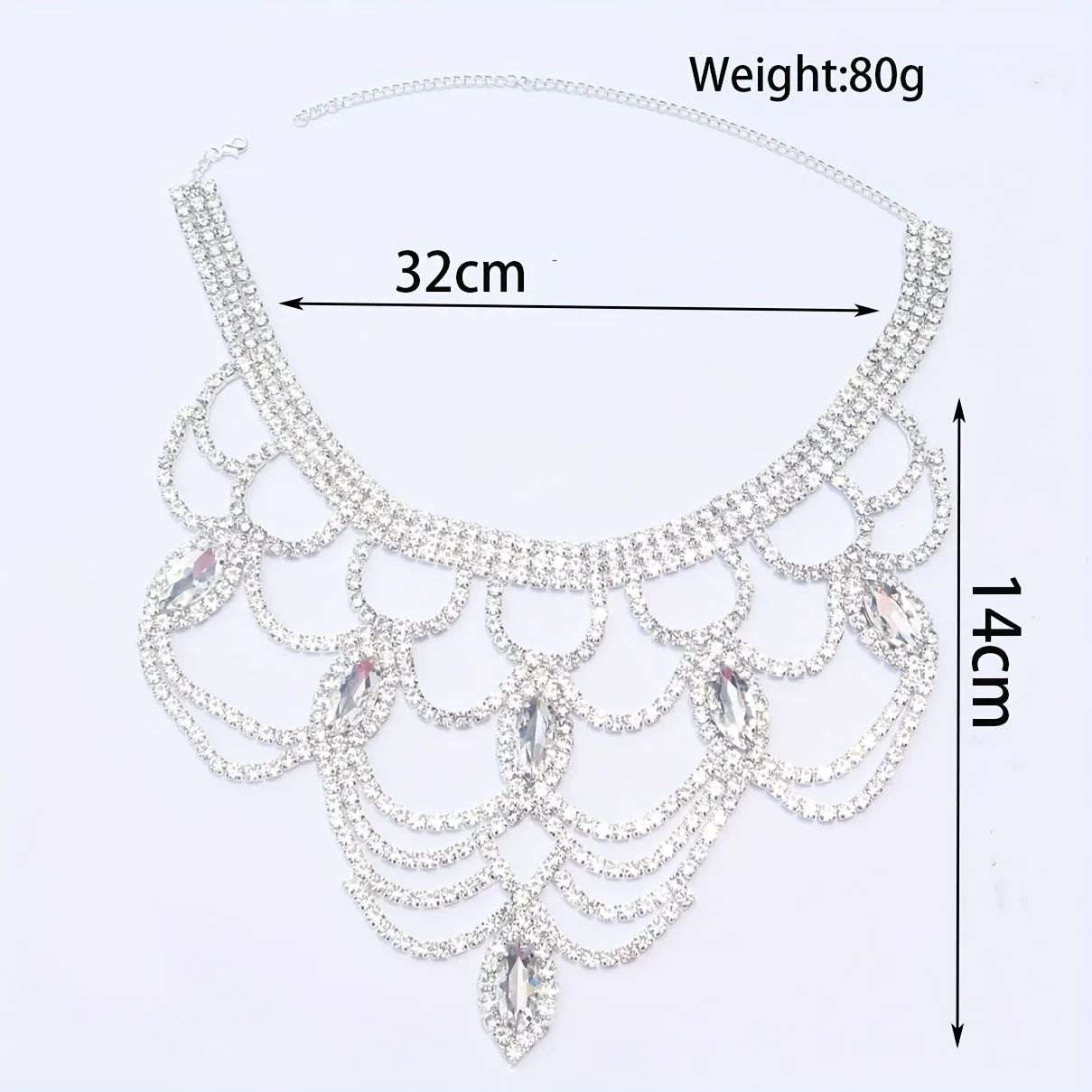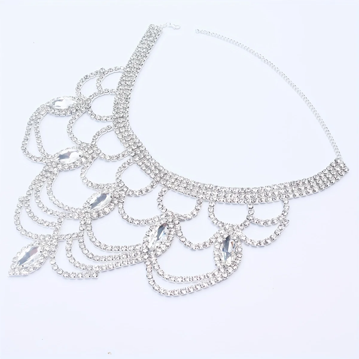 Fashion Shiny Rhinestone Necklace Jewelry Women’s Exquisite Luxury Bridal Wedding Party Jewelry Necklace Wearing Accessories