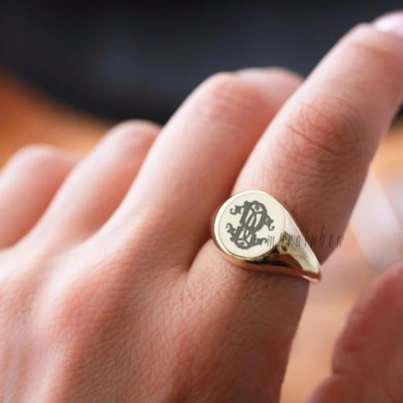GENTLEMAN SIGNET RING SYMBOLIZES SOCIAL STATUS PINKY RINGS INITIAL LETTER RING ENGRAVING HUSBAND GIFT FOR HIM