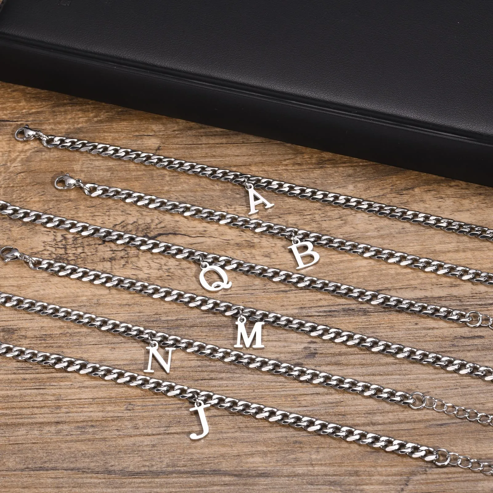 New Fashion Initial Letter A-Z Cuban Chain Bracelets for Men Dad Father Husband Papa BFF Male Boys
