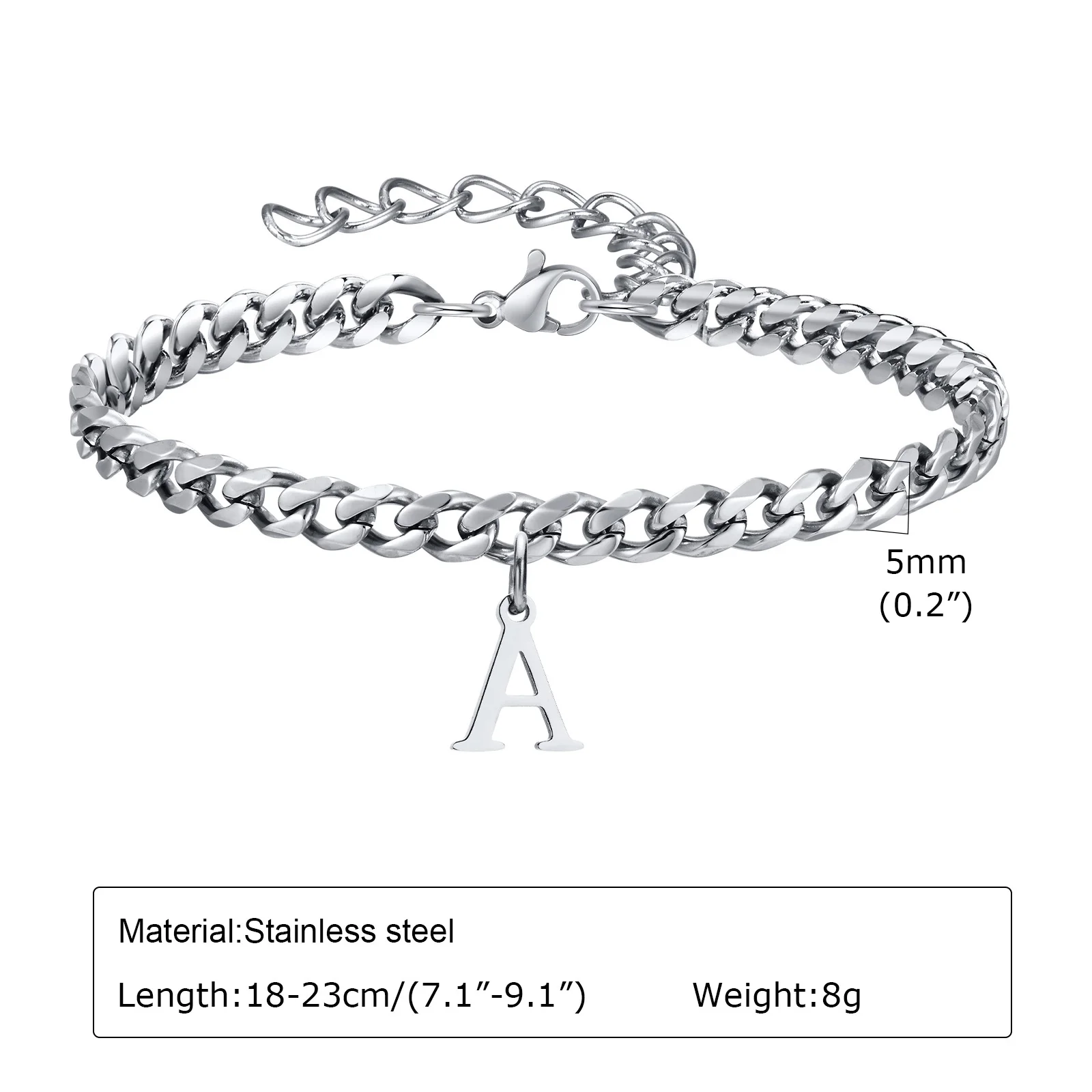 Mens Initials Cuban Links Bracelets,Stainless Steel A-Z 26 Letters Alphabet Charm Chain Wristband Adjustable,Casual Jewelry Gift
