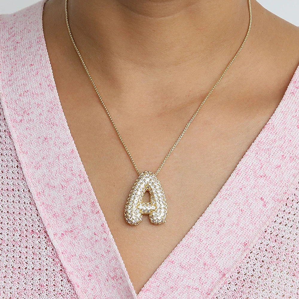 Sparkly CZ Zircon Letter Initial Necklace for Women Box Chain Gold Plated Balloon Bubble A-Z Pendant Neckalces Jewelry Gift