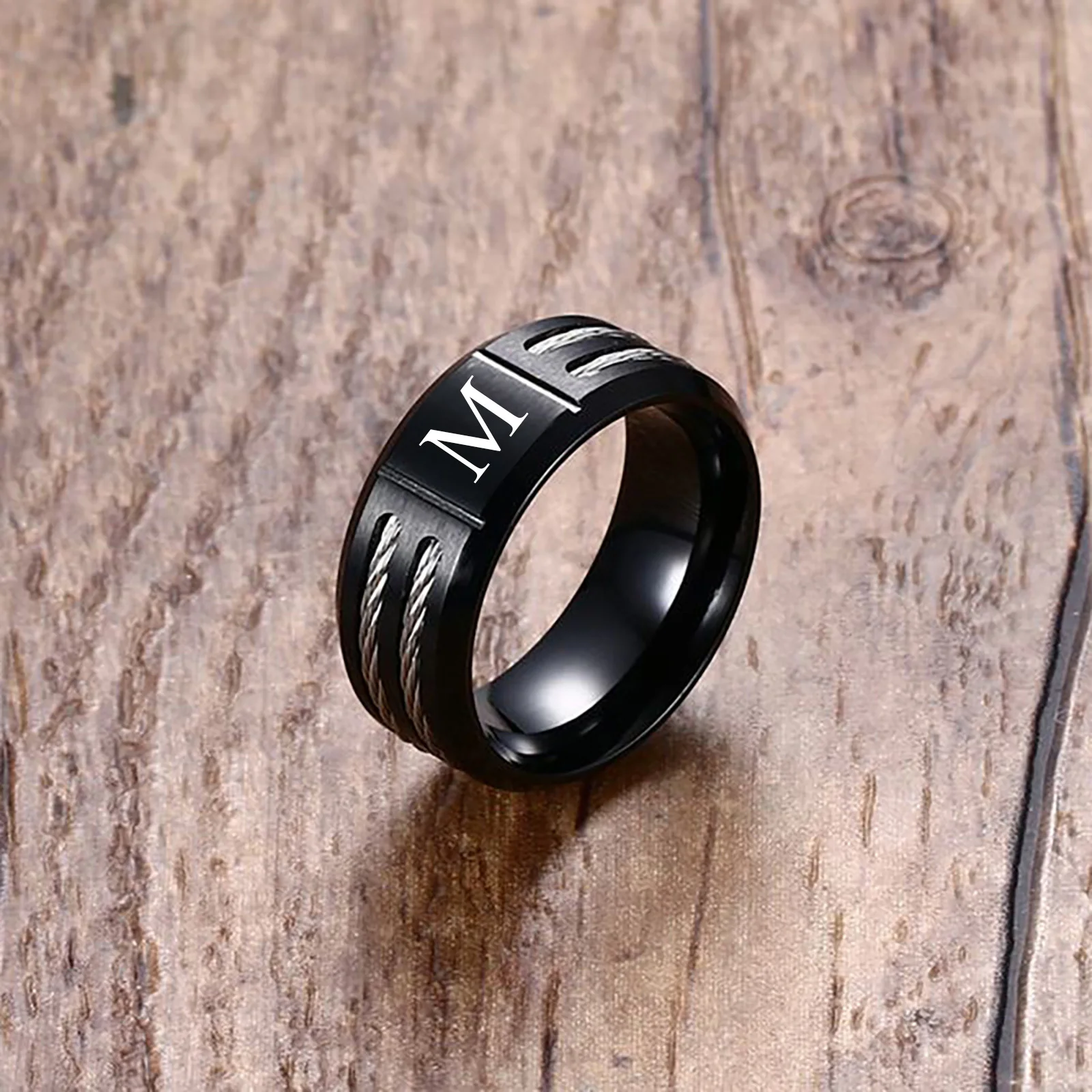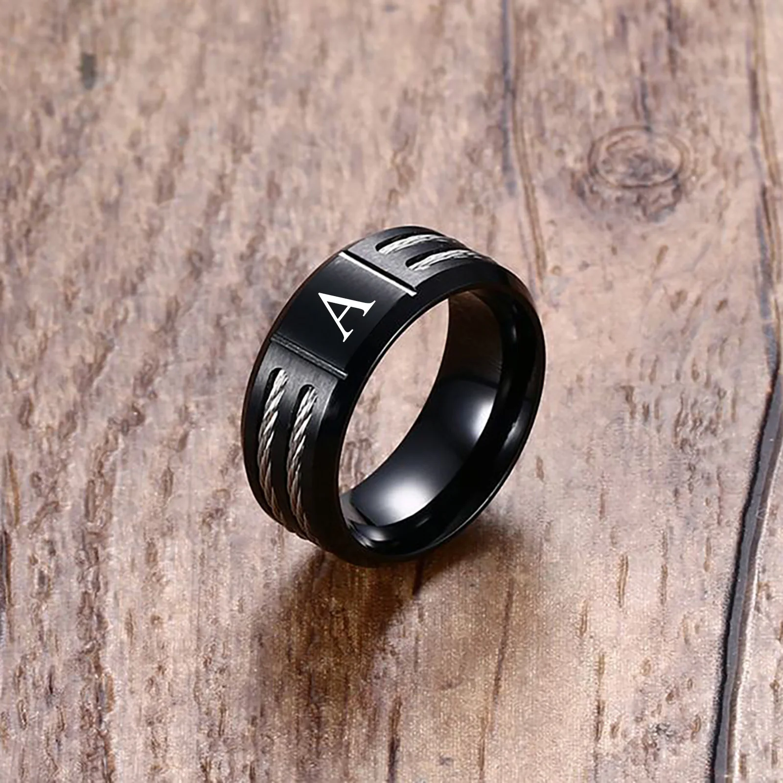 Free Custom Initial Letter A-Z Wedding Bands Rings for Men Male Boys Gifts Jewelry