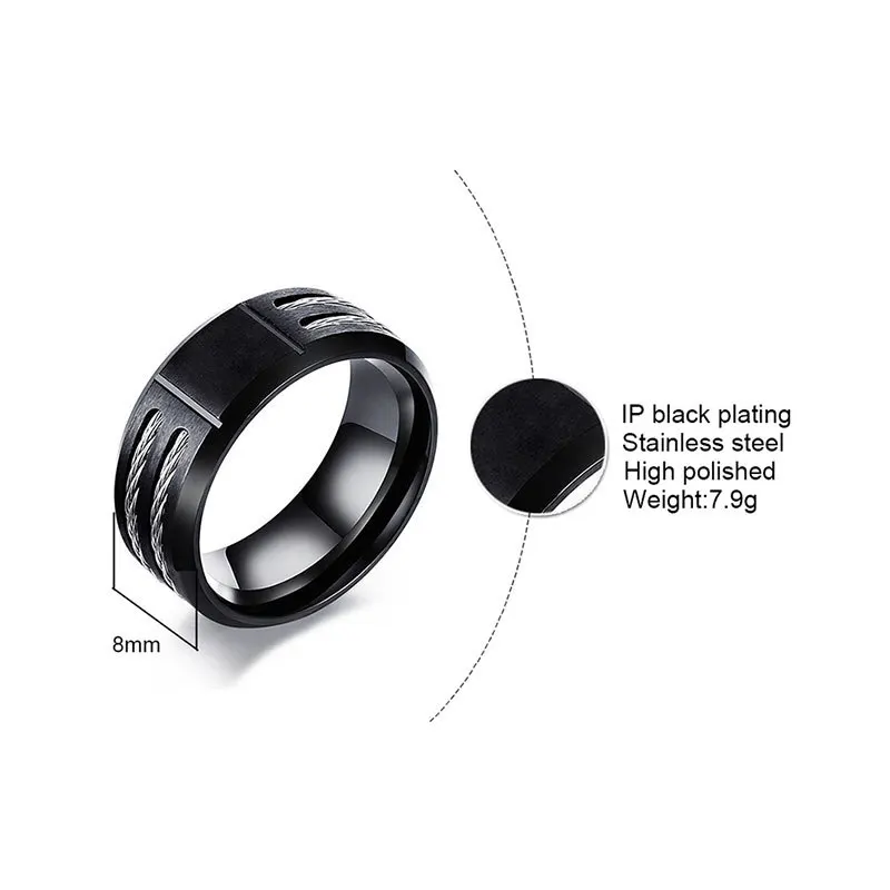 Stylish Black Mens Initial Ring, Waterproof Stainless Steel A-Z Letter Wedding Bands for Male Boys Finger Gift Jewelry