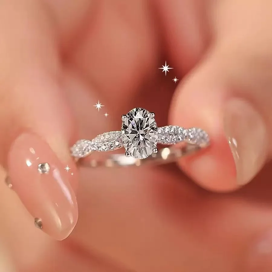 TEN CARATS 925 Sterling Silver Moissanite Ring for Women, Engagement 1CT Round Cut Elegant Sparkle Wedding Proposal Gift Jewelry