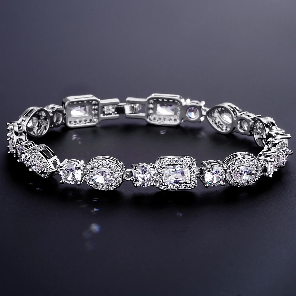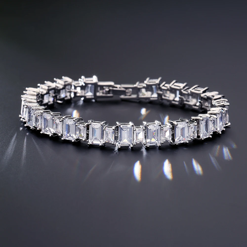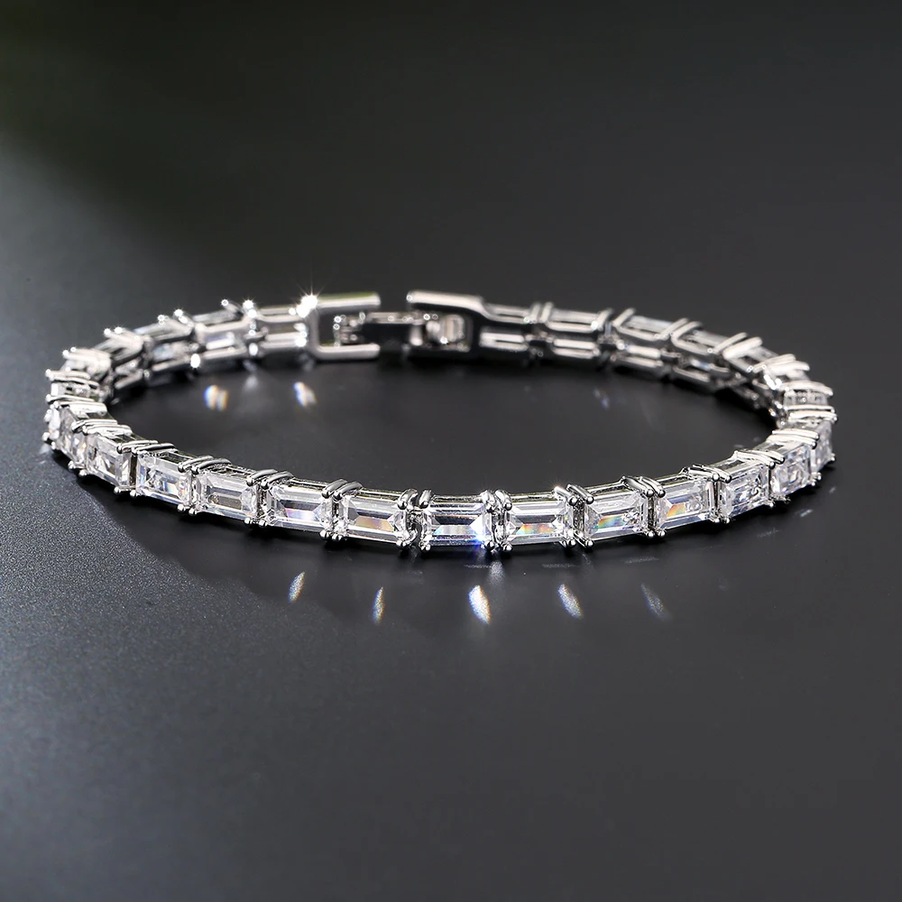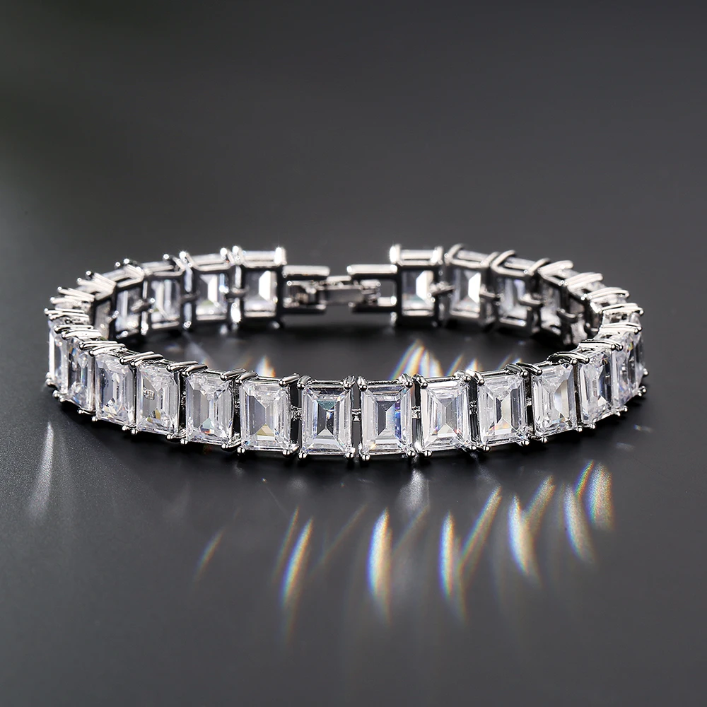 TrendMen Hiphop/Rock Trendy Square Zirconia Tennis Bracelets For Fashion Men Women Silver Color Crystal Wristlet Jewelry Bangles