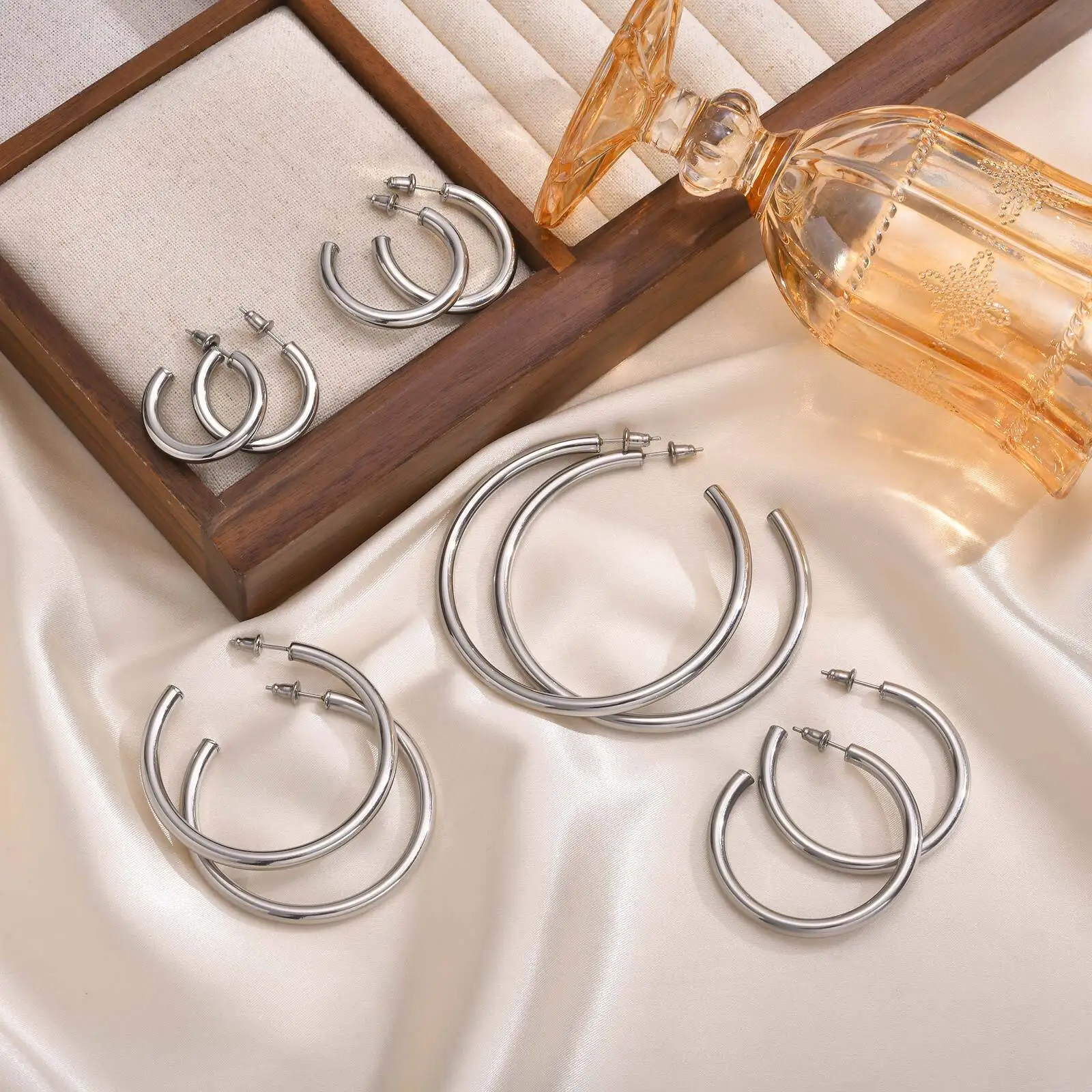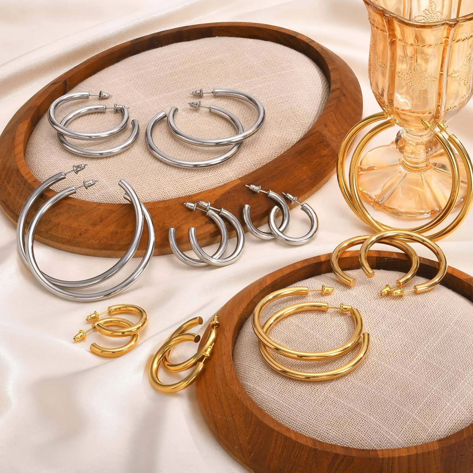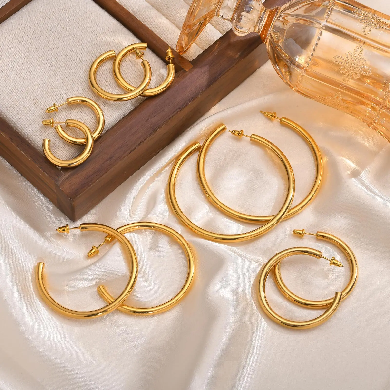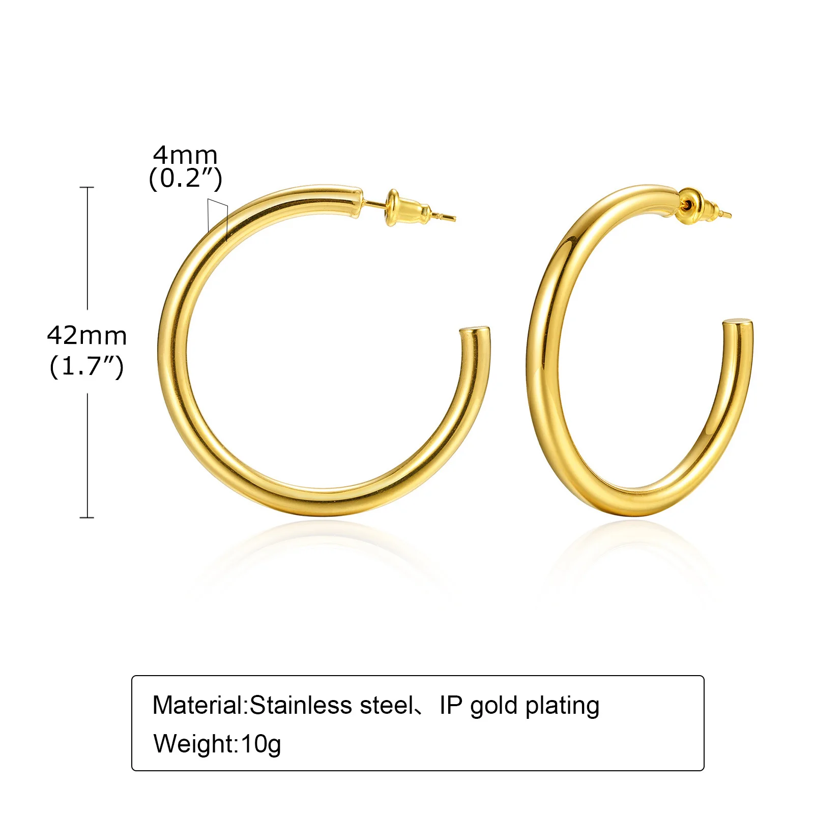 Waterproof Chunky Circle Hoop Earrings For Women, Gold Plated Stainless Steel Loop Earring 25/42/50/63mm